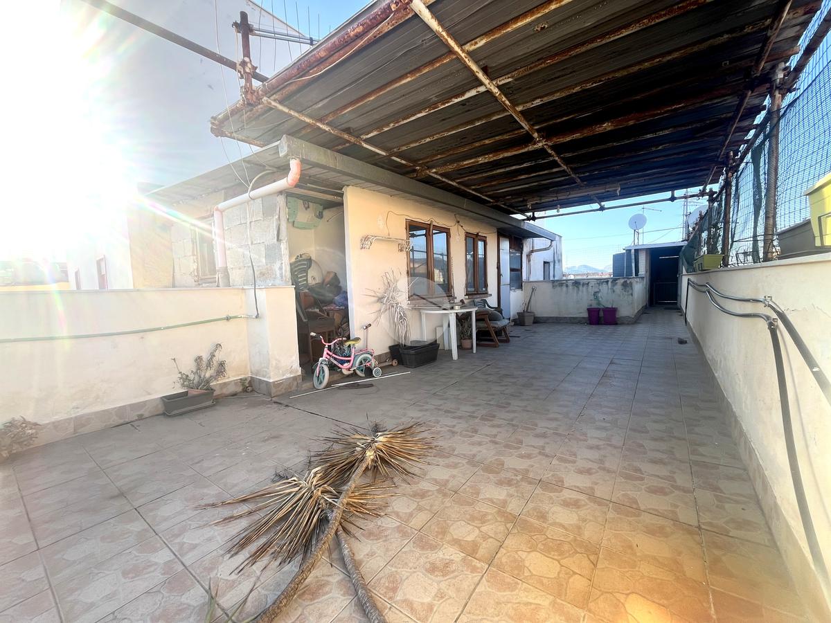 L'immobile, ben distribuito, ti accoglie con un disimpegno che separa gli spazi in modo armonioso. La zona notte è composta da una comoda camera da letto principale e una cameretta, ideale come stanza per i più piccoli o come studio. La cucina, abitabile e spaziosa, è perfetta per preparare i tuoi piatti preferiti e condividere momenti in famiglia. L'appartamento è completato da un bagno ben curato e da un pratico ripostiglio, che offre un extra di spazio per riporre ciò che ti serve. Ma ciò che rende davvero speciale questa casa è il terrazzo di pertinenza esclusiva, situato all'ultimo piano. Con la stessa superficie dell'immobile, questo terrazzo offre un'incredibile opportunità per creare il tuo angolo di paradiso all'aperto: perfetto per pranzi estivi, momenti di relax o per un po' di giardinaggio.