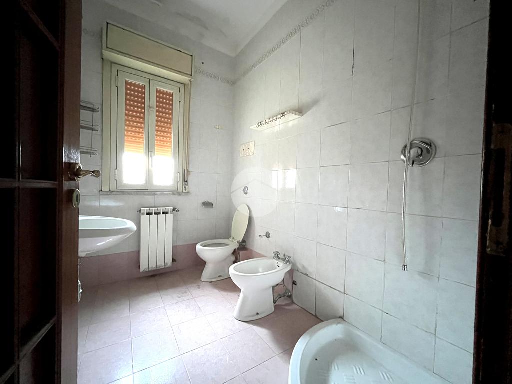 Proponiamo in vendita un ampio appartamento di 130 mq situato al terzo piano di una piccola palazzina senza ascensore. L’ingresso si apre su un disimpegno che accompagna alla zona giorno, dove troviamo un luminoso soggiorno con porta finestra e affaccio sul prospetto principale, adiacente a una comoda cameretta con lo stesso affaccio. Dal disimpegno si accede anche a un lungo corridoio che conduce alla camera da letto matrimoniale e ai due bagni, entrambi finestrati, uno con vasca e l’altro con doccia. Sullo stesso corridoio sono presenti un pratico ripostiglio e una seconda cameretta, ideale per bambini o come studio. La proprietà si completa con un’ampia cucina abitabile dotata di camino e di due balconi che si affacciano sul retro prospetto, offrendo ulteriore luminosità e sfogo esterno.