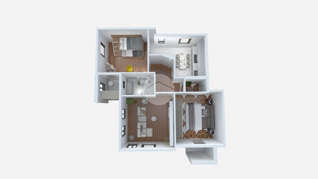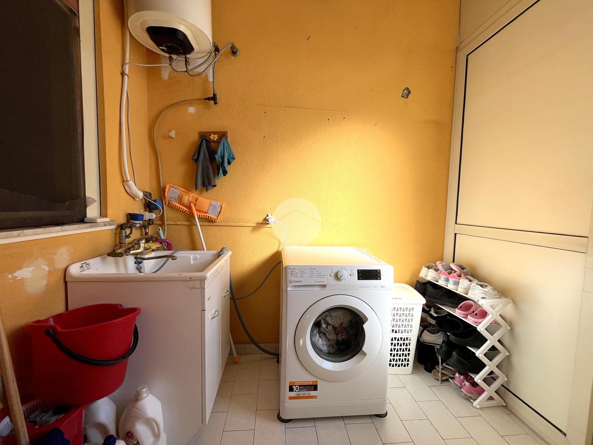 Alla sinistra dell’ingresso si trova la camera da letto, dotata di porta finestra con affaccio sul prospetto principale e splendida vista aperta. Un elegante arco accompagna verso il disimpegno, dal quale si accede al soggiorno, particolarmente arioso e luminoso grazie alle quattro finestre che ne valorizzano l’esposizione. Adiacente al soggiorno si sviluppa la cameretta, con veranda annessa dove è stata ricavata la zona lavanderia. Completano la distribuzione interna il bagno con vasca e la cucina abitabile, anch’essa luminosa e ben fruibile.