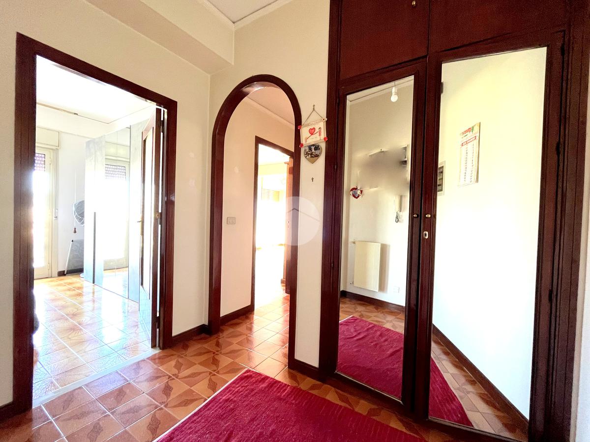 L’ingresso introduce in una saletta accogliente, resa funzionale dalla presenza di un armadio a muro; un secondo armadio a muro è presente nel disimpegno, offrendo pratici spazi contenitivi.